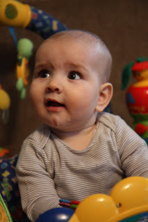 I plan to continue this regimen until Will is 8 months old. I am adding some blueberries and some citrus in the form of orange juice added to some of the purees. Some sources advise against berries and citrus until 8 months, but my pediatrician said I could go for it.